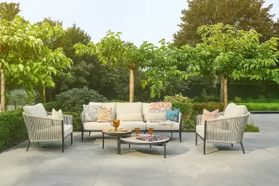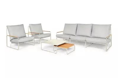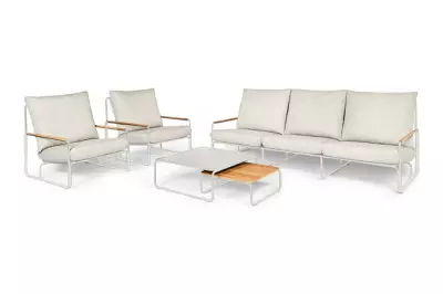 Hliníkové sedací soupravy kombinují lehkost, pevnost a elegantní design. Jsou odolné vůči UV záření, dešti i větru, a nevyžadují složitou údržbu. Moderní varianta pro komfortní a stylové venkovní posezení.