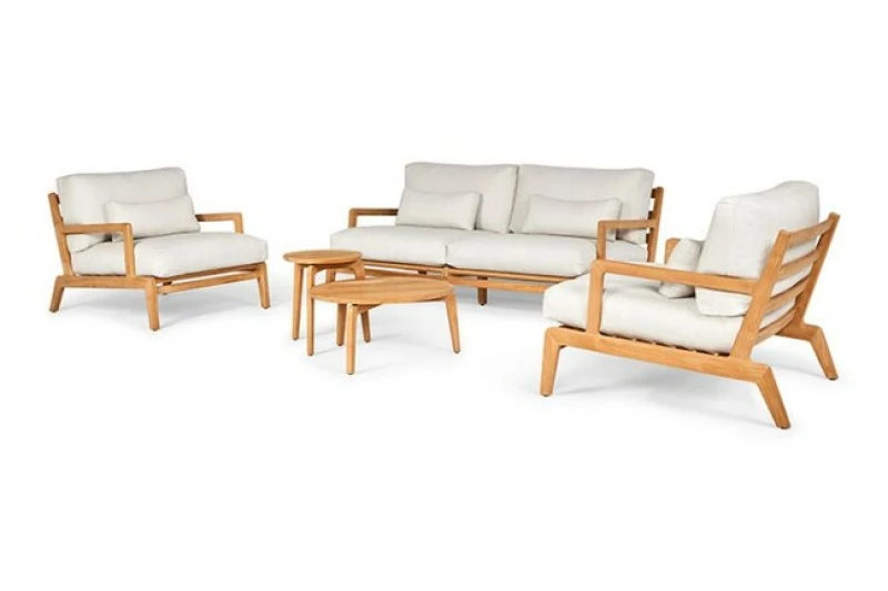 Sedací souprava SUNS Termoli je navržena pro dlouhodobé používání v exteriéru. Díky kombinaci teaku, rychleschnoucí pěny a látek Sunproof® si uchovává svůj luxusní vzhled a pohodlí po mnoho let.