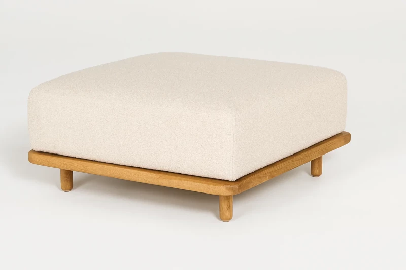 Multifunkční zahradní stolek/puf SUNS BORA Natural Gravel (100×100×40 cm) z certifikovaného teaku s tropickým designem. Celoroční použití, záruka 5 let. Plážový styl pro vaši zahradu.