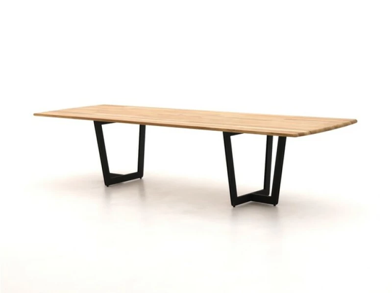 Masivní deska a diagonálně tvarované nohy dávají stolu moderní industriální charakter, který dokonale zapadne do každého typu venkovního prostoru – od městských teras po venkovské zahrady.